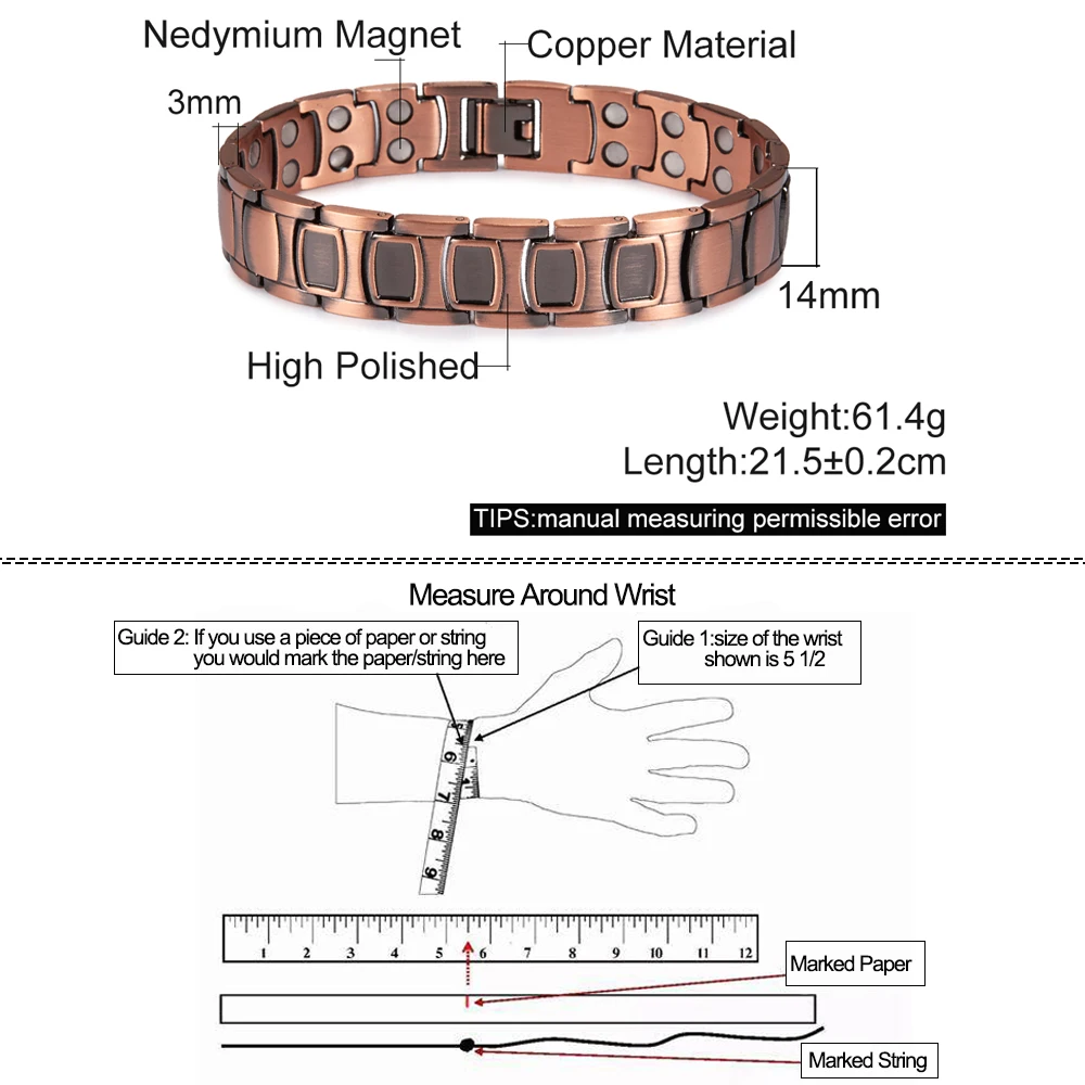 Pure Copper with Magnet Used For Therapy Control Blood pressure. Arthiritcs pain joint Pain